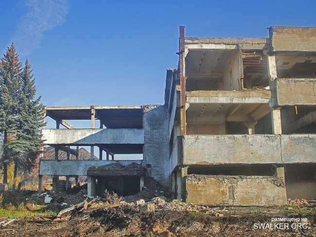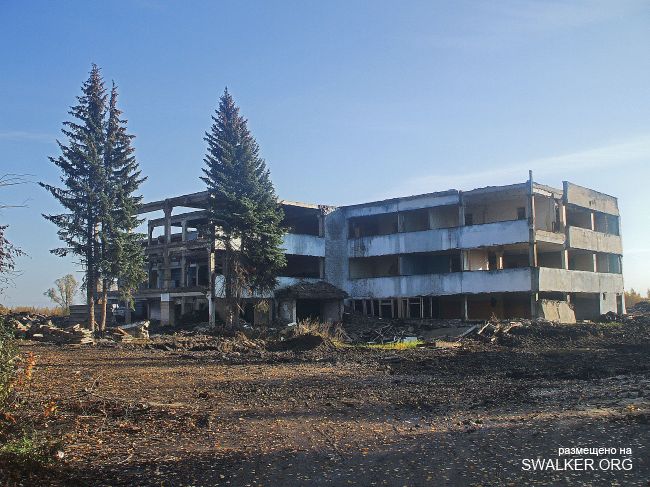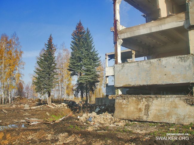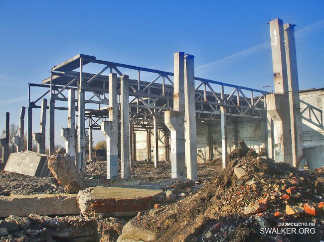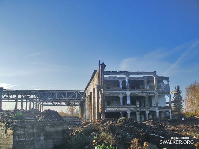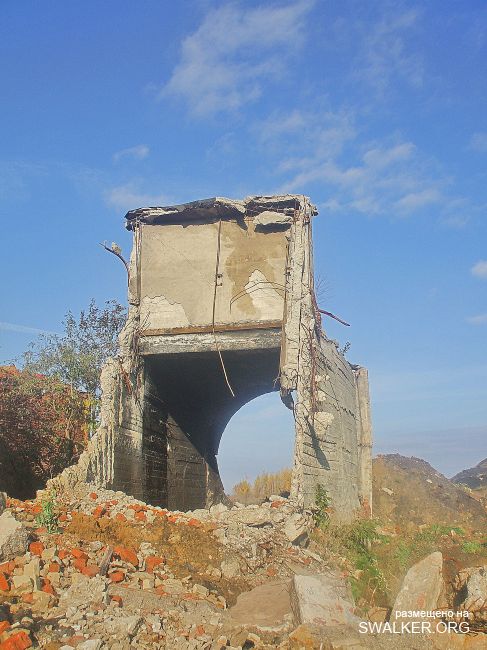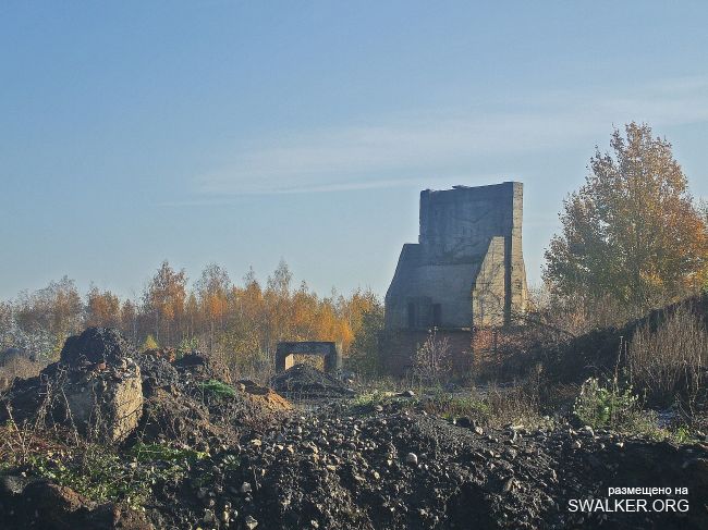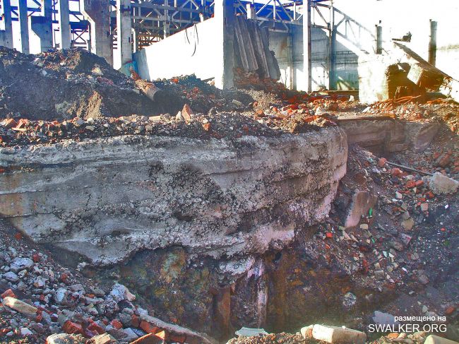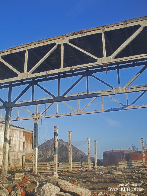 После затопления "Подмосковная" моментально привлекла охотников за черным и цветным металлом, халявными стройматериалами. Уже к лету 2010 была разобрана канатная дорога к террикону, Начался массовый снос зданий. Я, к сожалению, попал на шахту лишь в начале октября этого года, когда дестрой уже подходит к концу. На территории обнаружилась тяжёлая техника, отдельно сложены плиты от разбираемого административного здания ( единственного оставшегося ). Само здание и сохранившуюся часть подземки посетить не удалось, т.к. нарвался на весьма недружелюбно настроенных кавказоидов, ведущих демонтаж и вынужден был покинуть территорию, как говорится, "во избежание".