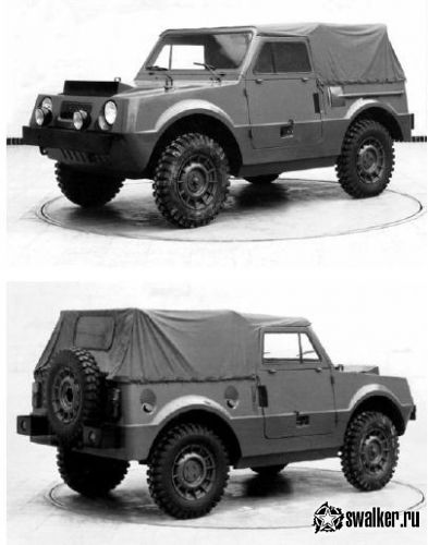 На первом варианте машины тент не имел боковых окон, однако при испытаниях стало ясно, что обзорности назад катастрофически не хватает и они были внесены в конструкцию. Однако герметичность кузова плохо влияла температурный режим работы «нивовских» агрегатов, в результате чего они быстро выходили из строя, легкий кузов не выдерживал серьезных нагрузок. Но прототип заказчикам все равно понравился, было решено продолжать работу и конструировать второй вариант джипа.