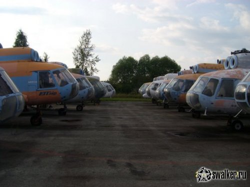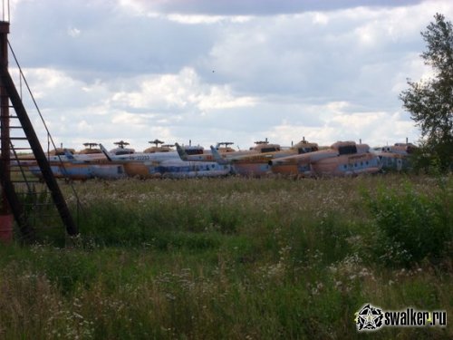 Касательно техники. Самолетов и вертолетов там было действительно очень много.После развала Союза спрос на авиаперевозки по внутренним маршрутам резко упал, летать было некуда и не на чем. Поэтому большая часть авиапарка простаивала. Где то года до 2000 го все рулежки и стояночные площадки были заставлены машинами. Позже их начали потихоньку или реанимировать или утилизировать, в зависимости от состояния. В 2009, когда я туда лазил, остались только наиболее живые образцы, но все равно их было немало. Сейчас стоит уже не более полутора - двух десятков единиц техники, и то она скорее в состоянии горячей консервации, нежели мертвая. Хотя, есть и откровенно нелетающие.