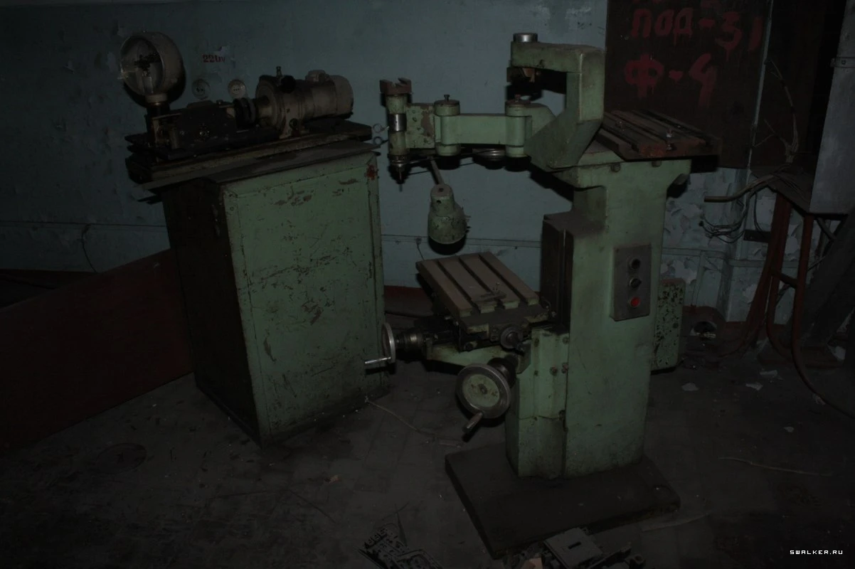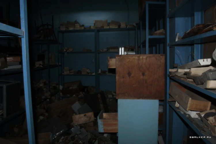 Поднимаясь по лестнице, мы заметили бочки с надписью «огнеопасно». На втором этаже мы обнаружили склады с электро компонентами и книги по радиотехнике. В дальних помещениях количество оборудования уменьшалось, а пол становился слабее, словно вот-вот провалится. На верхних этажах были кабинеты руководства и актовые залы, почти пустые.