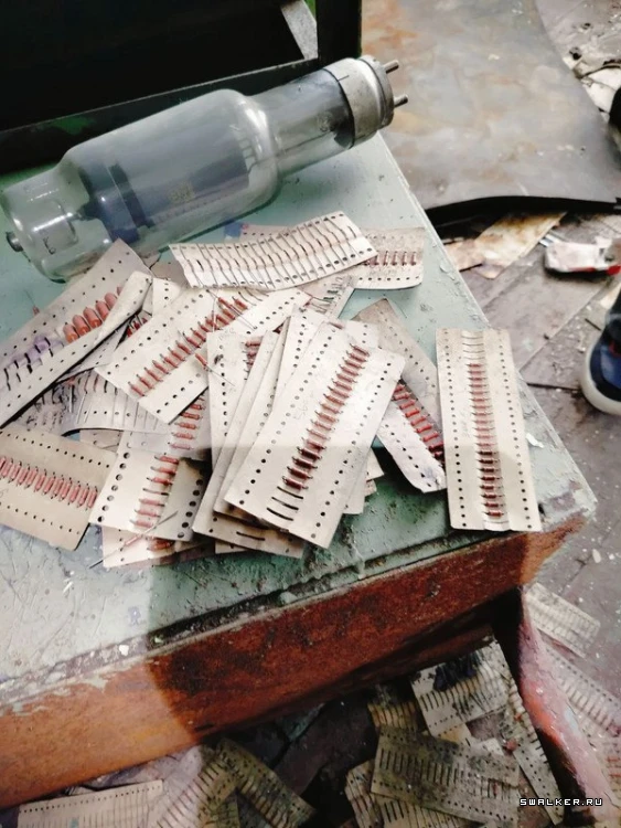 В некоторых помещениях были склады с различными радиодеталями: конденсаторами, радиолампами, транзисторами и резисторами.![]()