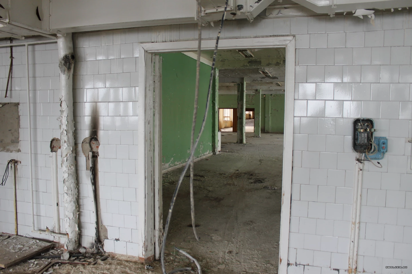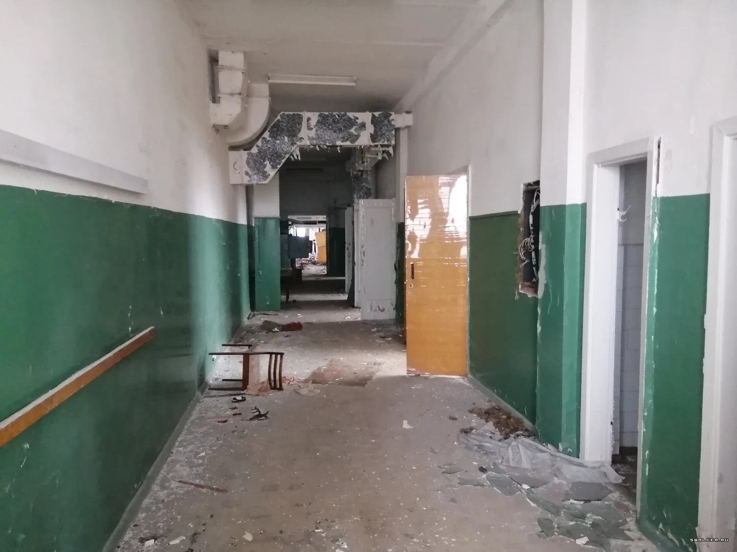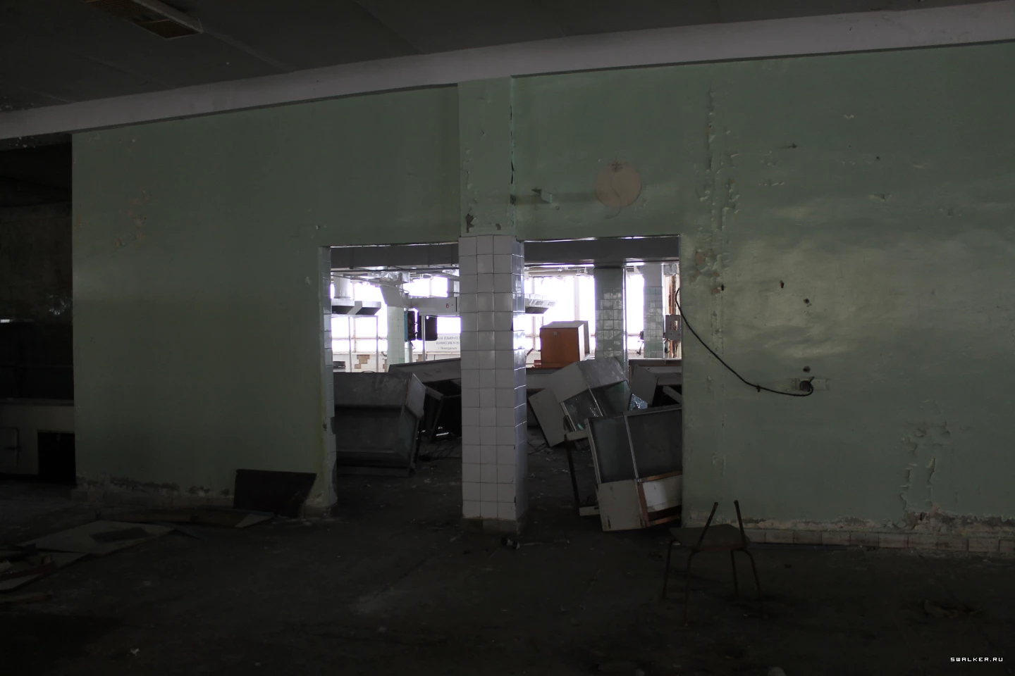 Проход в левом крыле. Топая по конца, и направо попадёшь в цеха