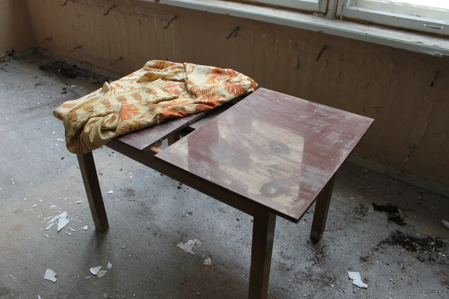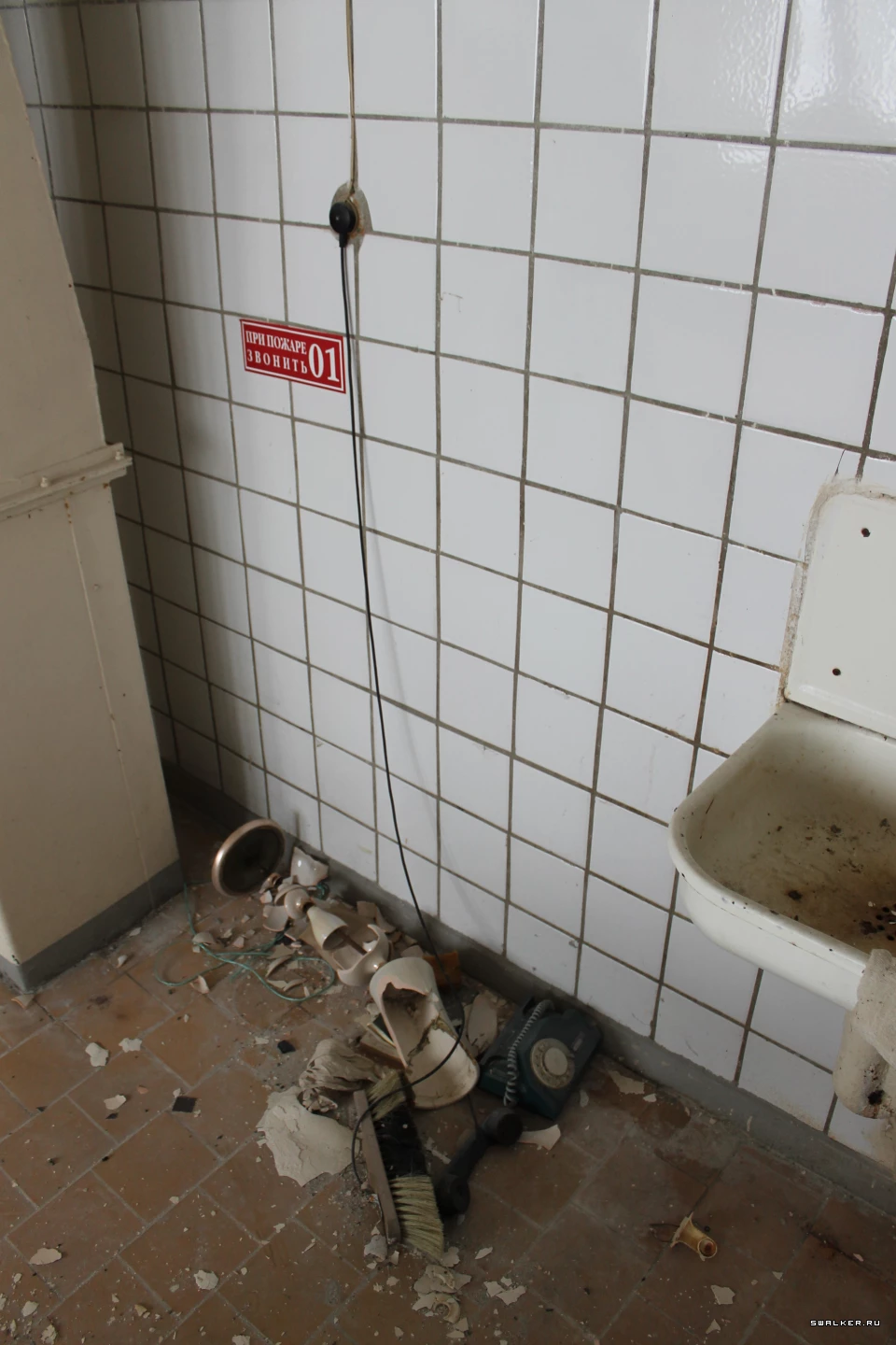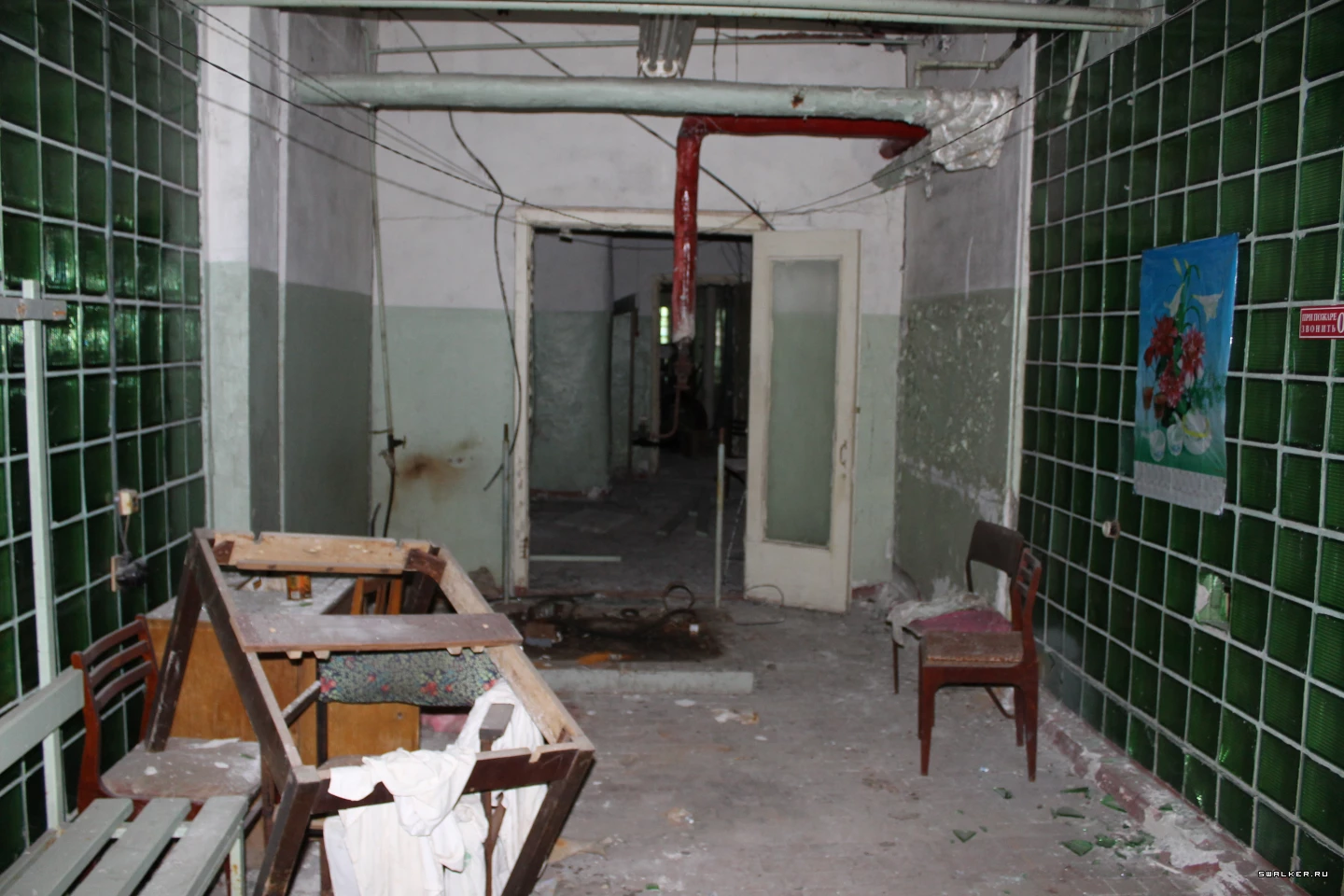 Из технических помещений попадаем на лестничную площадку для персонала столовой и далее перемещаемся на этаж выше