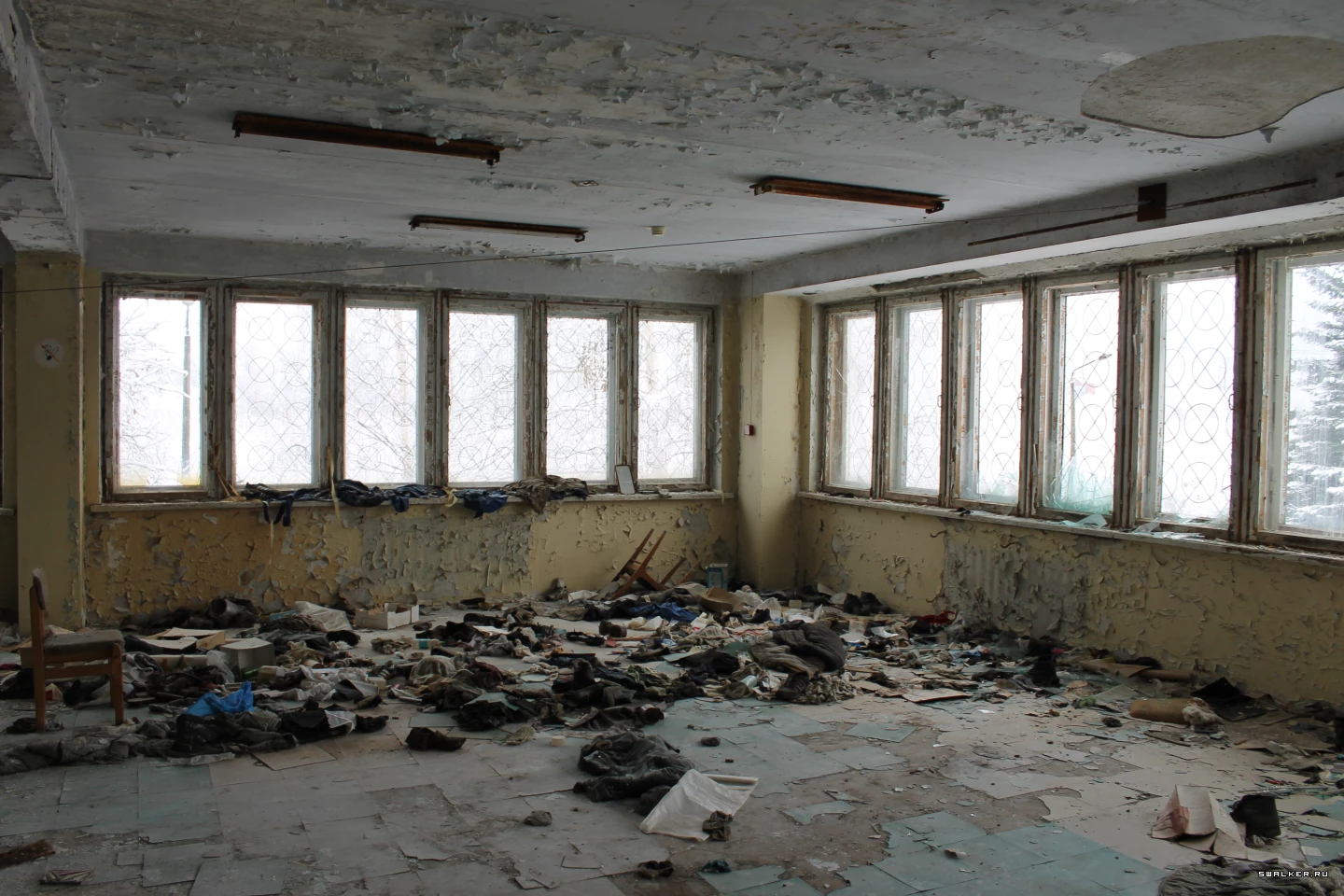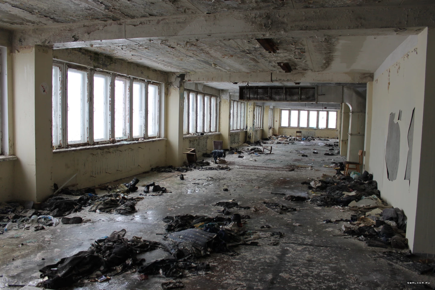 Шкафчики давно распродали или сдали, оставив только одежду рабочих, которая была в этих шкафчиках
