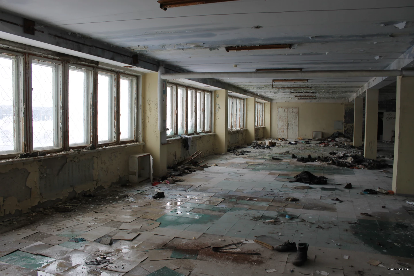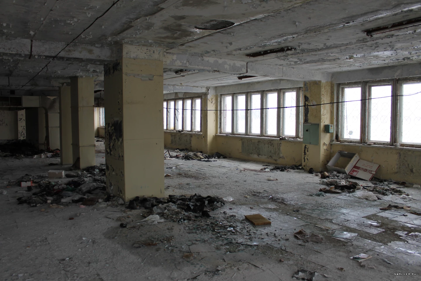 На этот раз посетим 2й и 3й этажи передней части административного здания УАМЗа, предназначенные для раздевалок заводчан.
