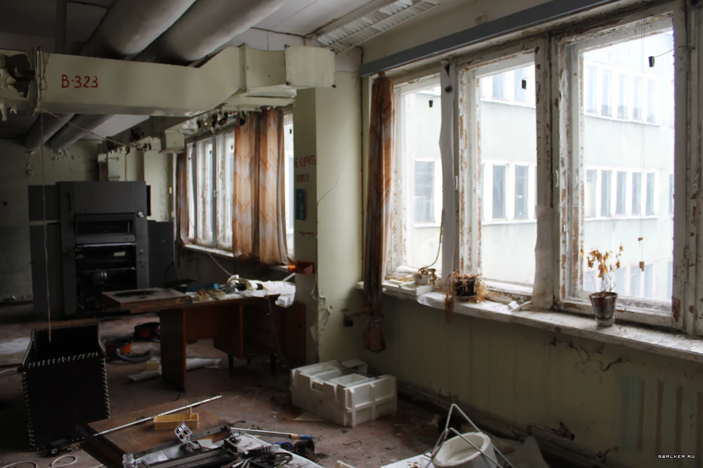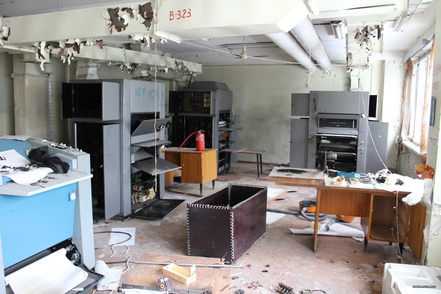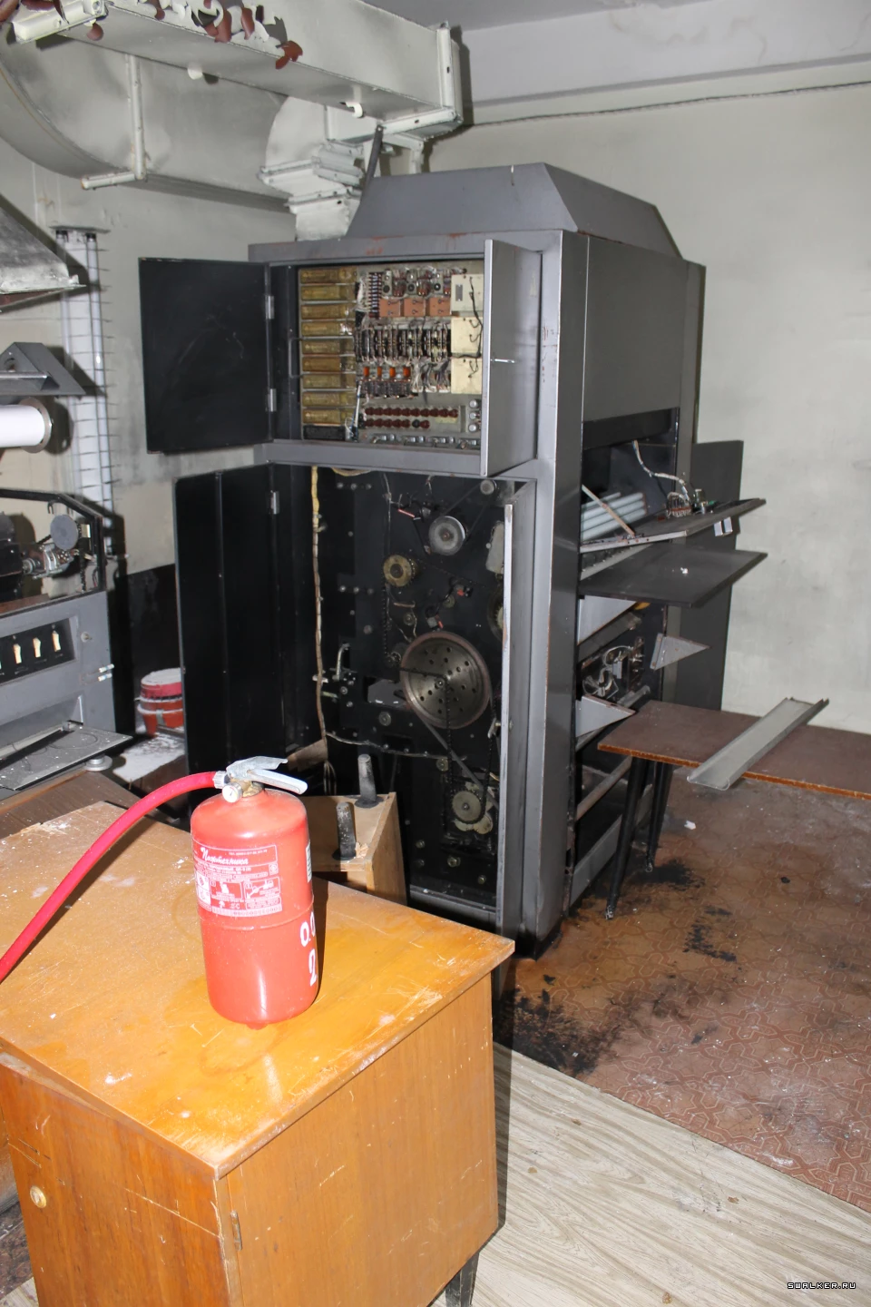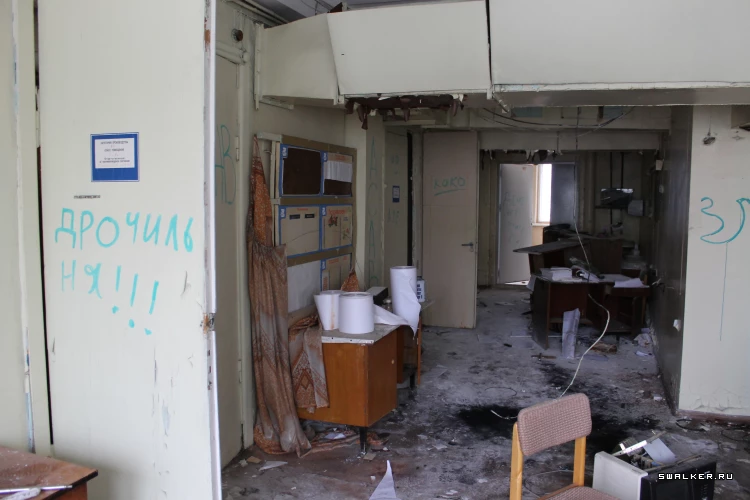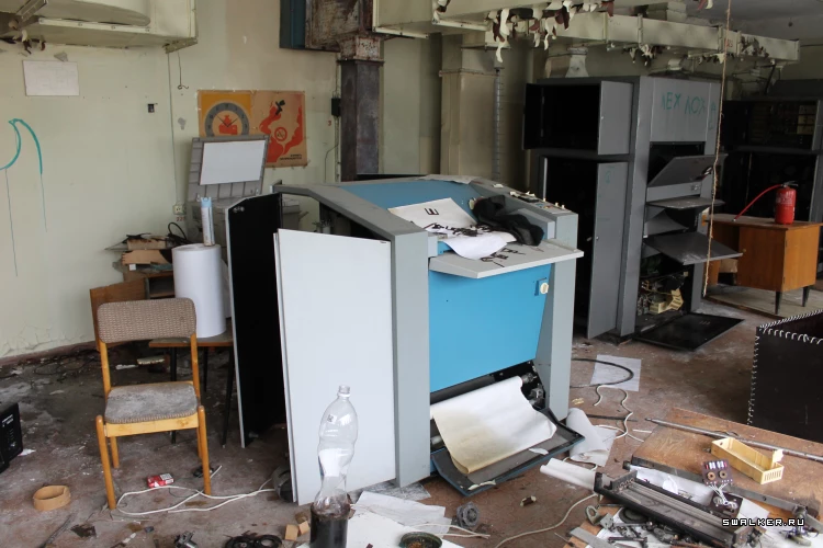 АМУР и его административная часть. Прогуляемся по помещениям второго этажа. Там блуждая по основному проходу к цехам, заглянули в один из кабинетов, являющихся участком всякой полиграфии и типографии